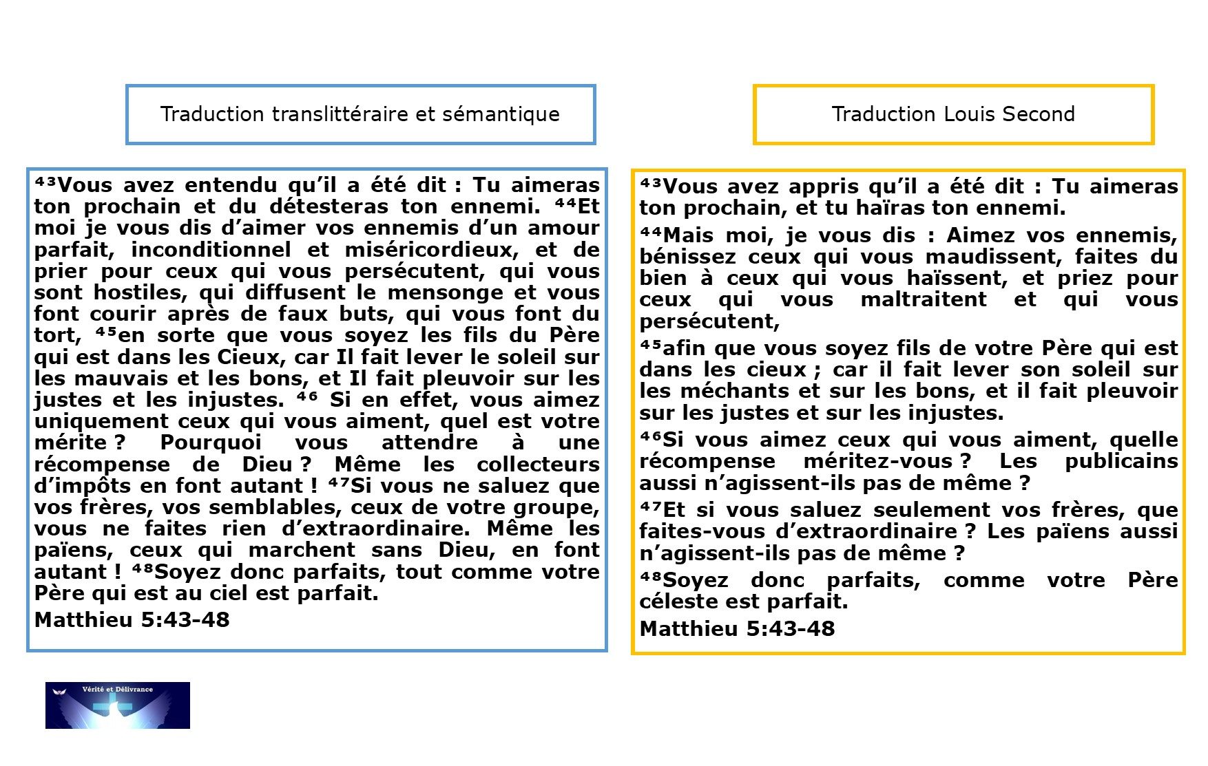 Matthieu 5:43-48, Traduction Louis Segond