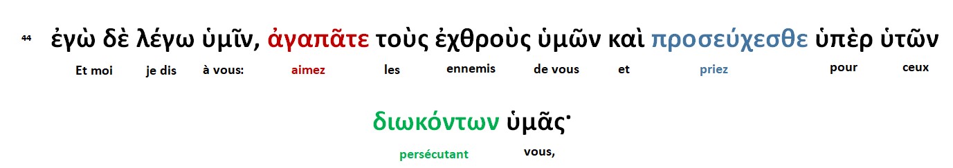 Il nous faut reprendre le verset 44 en grec, car dans la traduction française, beaucoup de mots ont été ajoutés, comme le verbe maudire qui n’apparaît pas dans le texte originel, afin de bien comprendre ce verset.