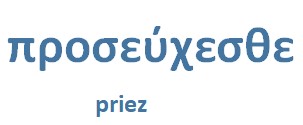 Ce verbe est composé de la préposition πρός – pros qui signifie à l’avantage de, à, près de, en considération de. Et du verbe εὔχομαι – euchomai, qui signifie prier Dieu, souhaiter, désirer, demander.