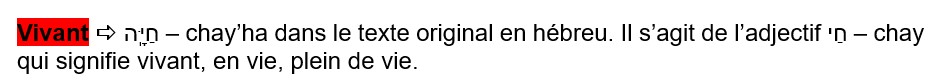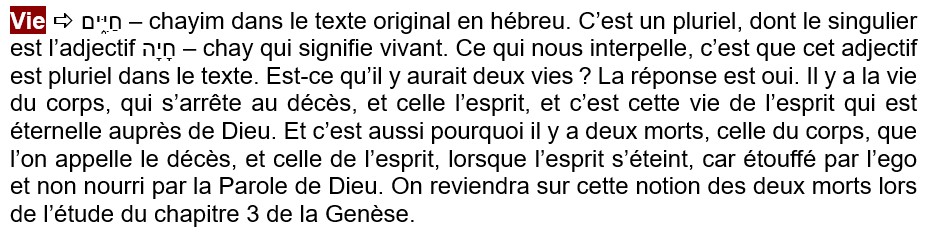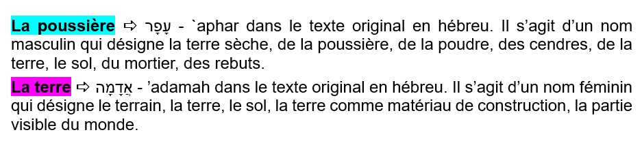 Rappelons que le but de ces études est de donner le sens le plus proche possible du texte du Livre de la Genèse, donc de la Parole de Dieu. Dans ces études, nous nous attarderons essentiellement sur les mots hébreux dont le sens n’a pas été correctement restitué ou parfois même inversé par les traductions françaises qui sont à notre disposition, afin de pouvoir donner le sens véritable du texte, sans le prisme d’une doctrine ou d’une idéologie religieuse.