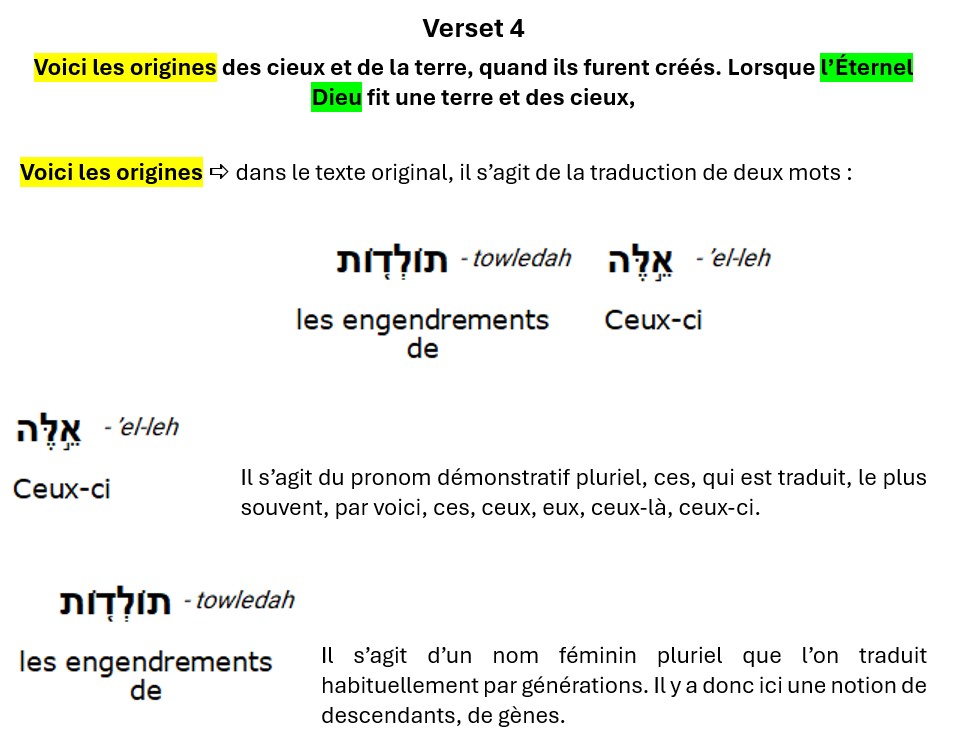 Et l’on a traduit tout cela par « voici les origines ». On a voulu en saisir l’idée globale. C’est effectivement l’origine du monde, mais il y a quelque chose de subtil, un message plus subtil dans cette Parole de Dieu.
