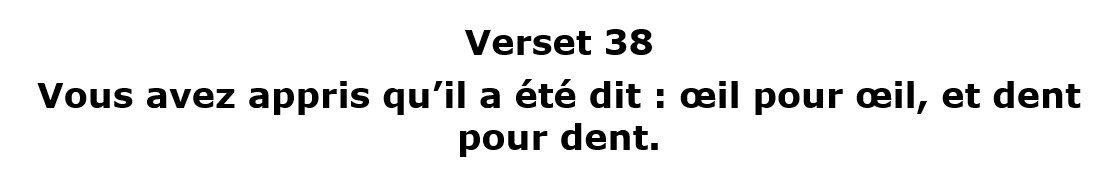 Dans notre étude qui concerne les versets 38 et 42 du chapitre cinq de l’Évangile de Matthieu, Jésus-Christ revient sur la loi du Talion pour en faire une loi d’amour, une loi de paix. Fini de rendre le mal à celui qui nous fait du mal. Au lieu de cela, Jésus-Christ demande de rendre le bien à celui qui nous fait du mal et de ne pas chercher à convaincre ou à discuter avec le mauvais.