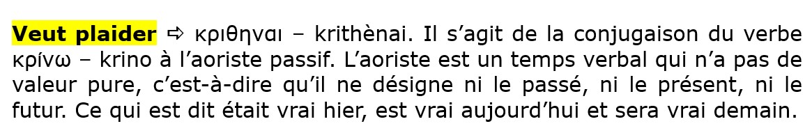 Le verbe κρίνω – krino signifie séparer, mettre en morceaux, démonter, juger, être d’opinion, penser, prononcer un jugement, assujettir à la censure, régenter.
