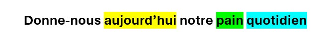 ¹¹Donne-nous aujourd’hui notre pain quotidien ; ¹²pardonne-nous nos offenses, comme nous aussi nous pardonnons à ceux qui nous ont offensés ;