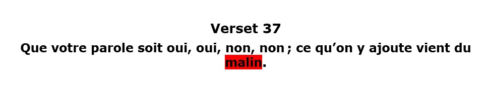 ³⁷Que votre parole soit oui, oui, non, non ; ce qu’on y ajoute vient du malin.