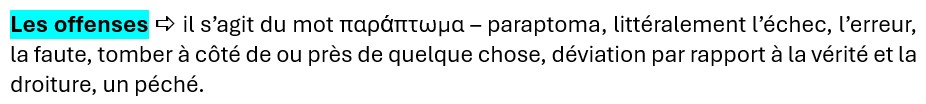 Donc, dans ce mot παράπτωμα – paraptoma on a l’idée de se tromper, l’idée de glisser de côté, de dévier du droit chemin, de se détourner, de faire une erreur et d’être en errance.