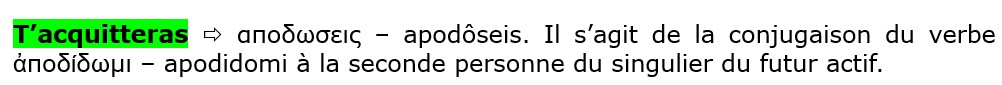Le verbe ἀποδίδωμι – apodidomi signifie payer, rendre un dû, dette, salaire, tribut, taxes, choses promises sous serment.