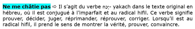 Éternel ! ne me punis pas dans ta colère, et ne me châtie pas dans ta fureur.