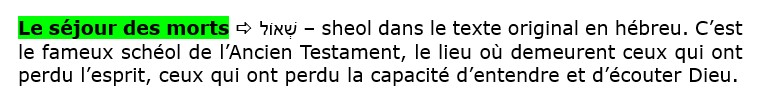 On plonge dans ce séjour des morts, ce schéol ou l’enfer, lorsqu’on laisse la loi de la chair nous dominer complètement, lorsqu’on ne lutte pas contre cette loi de la chair.