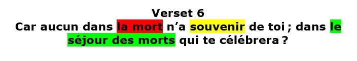 Relisons les versets 5 et 6 du psaume 6