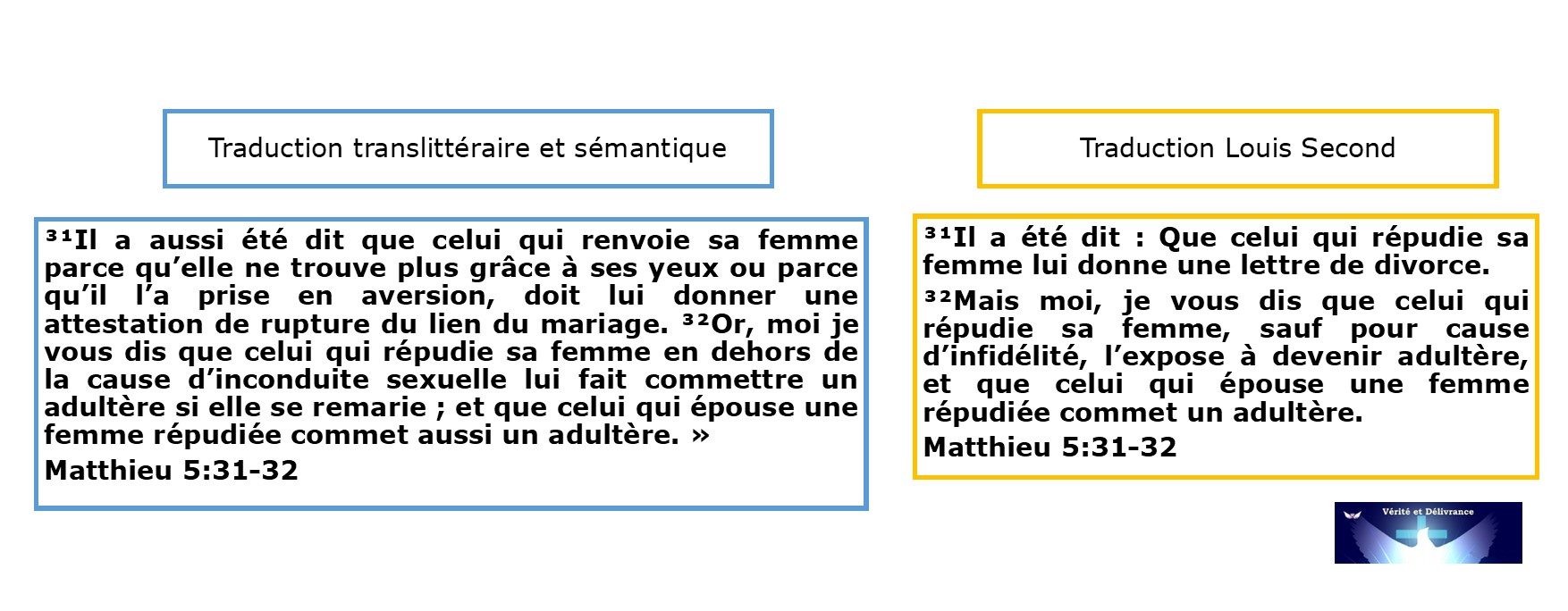 Matthieu 5:31-32, Traduction Louis Segond